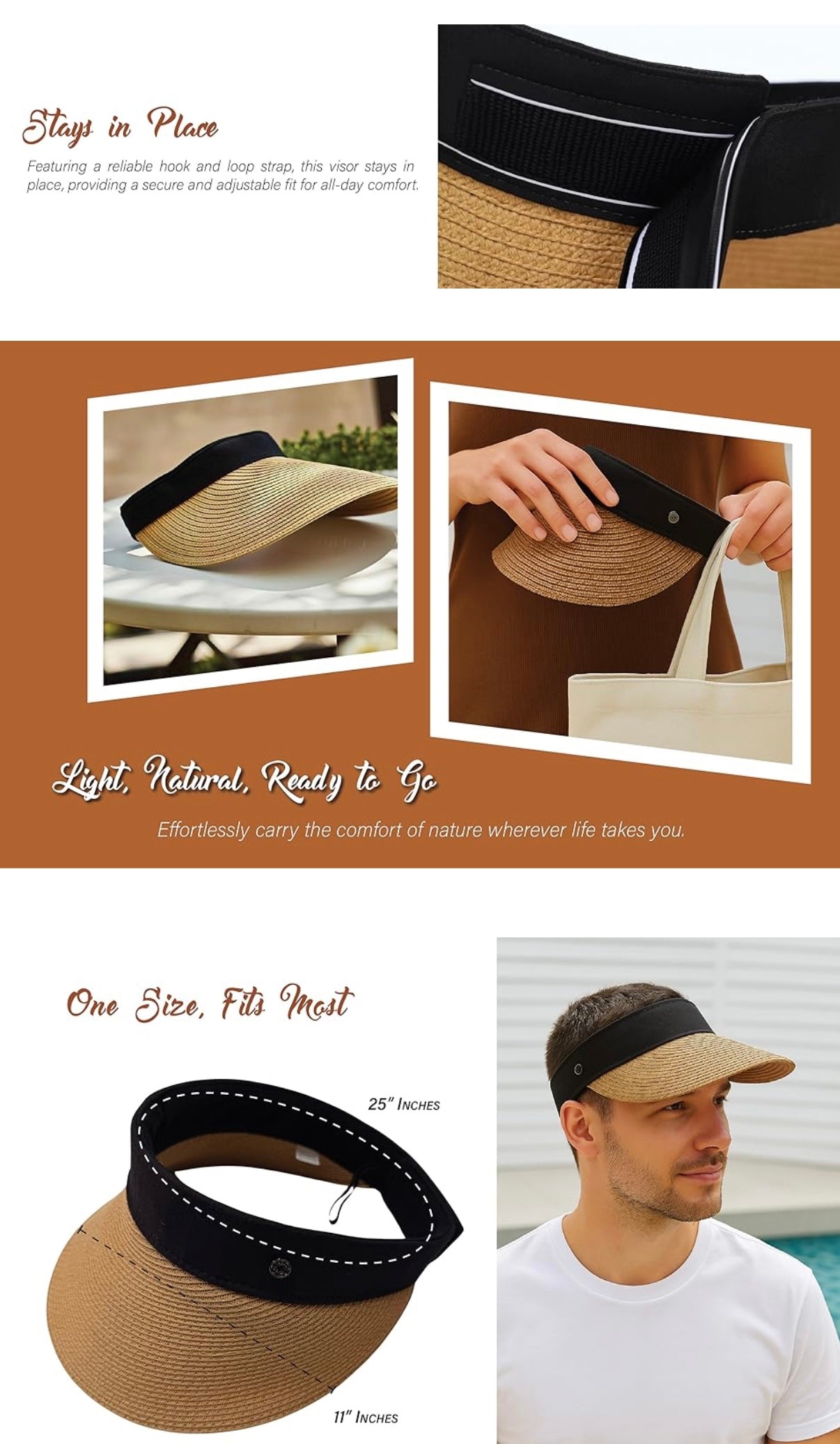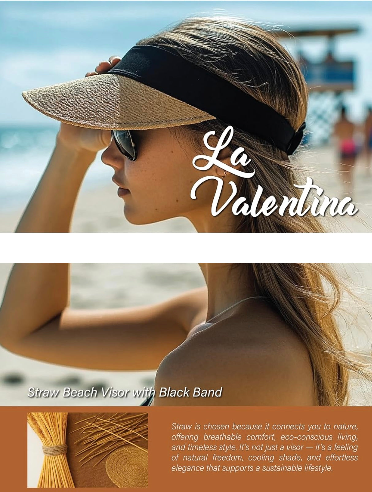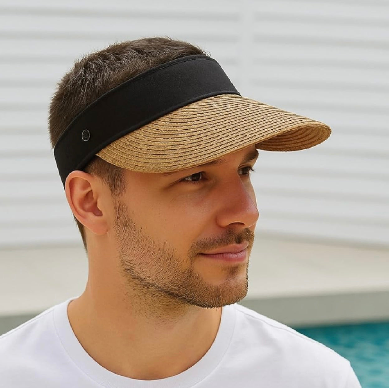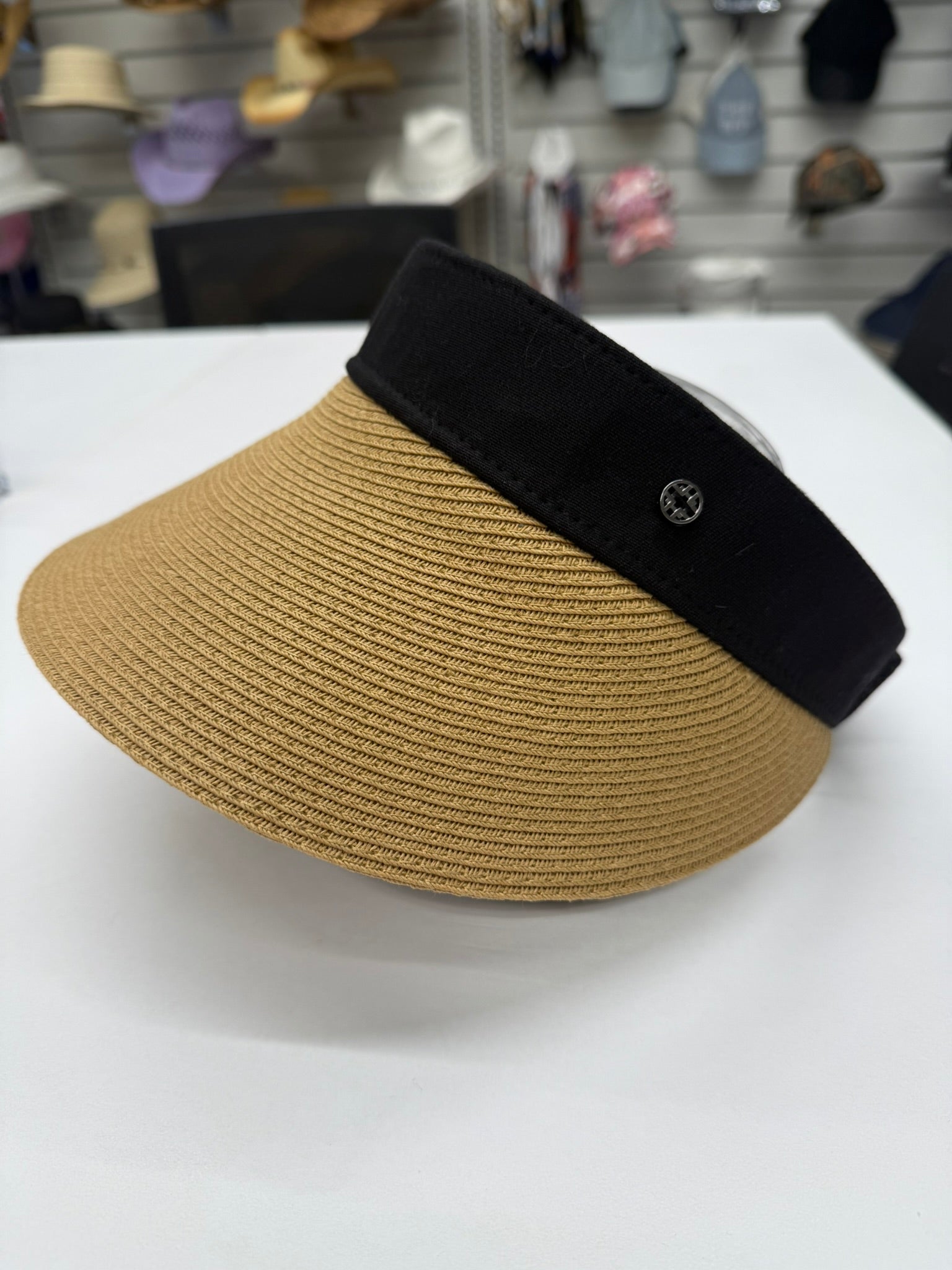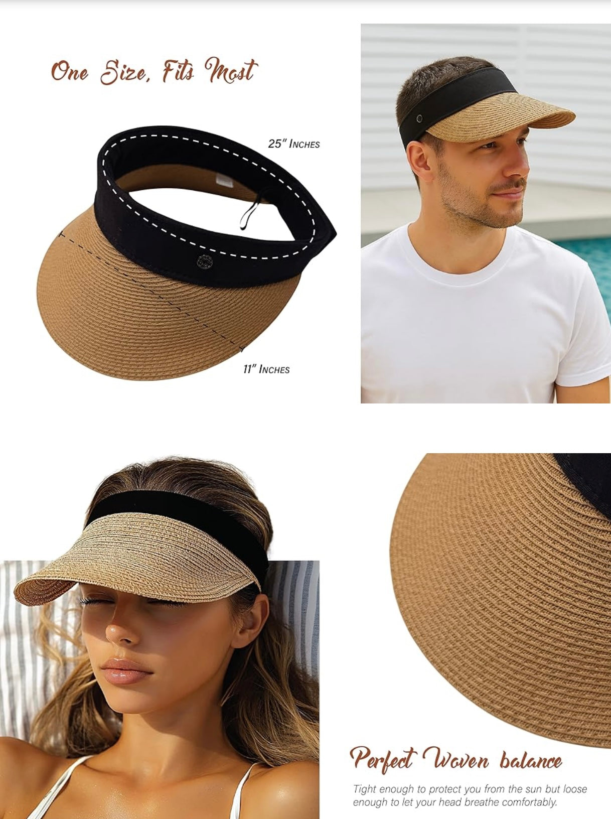 Straw Sun Visor Hat - Wide Brim Beach Visor with Black Band